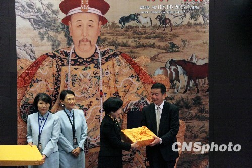 10月6日,北京故宮博物院院長鄭欣淼向臺北故宮博物院致贈《清乾隆朝清文大藏經(jīng)》,臺北故宮院長周功鑫回贈《清康熙朝藏文龍藏經(jīng)》。兩岸故宮60年來首度合辦的展覽“雍正——清世宗文物大展”,7日在臺北故宮博物院開展,這是兩岸故宮開啟“務(wù)實交流”后,交出的首張亮眼的成績單。 中新社發(fā) 黃少華 攝