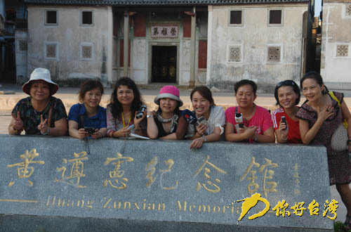 報道團(部分成員)在黃遵憲故居前合影。(你好臺灣網 陳黎琴 攝)