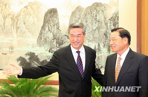 10月28日,中共中央政治局常委、全國政協(xié)主席賈慶林在北京人民大會堂會見臺灣海基會董事長江丙坤率領(lǐng)的海基會新聞交流團(tuán)一行。新華社記者 饒愛民 攝