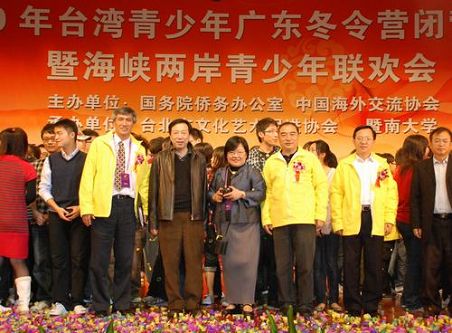1月30日下午,由中國海外交流協會主辦,臺北市文化藝術促進協會、暨南大學承辦的“2010年臺灣青少年廣東冬令營”在暨南大學禮堂閉營。閉營儀式上,營員們表演了臺灣特色的文藝節目,載歌載舞,盡情聯歡。中國海外交流協會文教部部長劉輝,冬令營營長、臺北市文化藝術促進協會會長黃寤蘭,中國海外交流協會文教部副部長李民,暨南大學校領導胡軍、蔣述卓、賈益民、陸大祥、紀宗安、葉勤、周天鴻、林如鵬等出席閉營儀式。