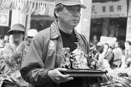 臺灣信徒捧著媽祖神像巡街