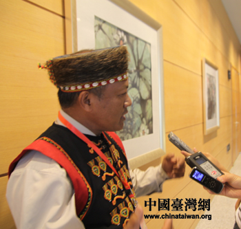 中國臺灣網6月20日廈門消息 著傳統民族服裝出席第二屆海峽論壇大會的臺灣原住民代表包世晶今天接受記者采訪時表示,期待赴臺個人游能夠迅速實現,歡迎更多的大陸觀光客到他所在的部落游玩。