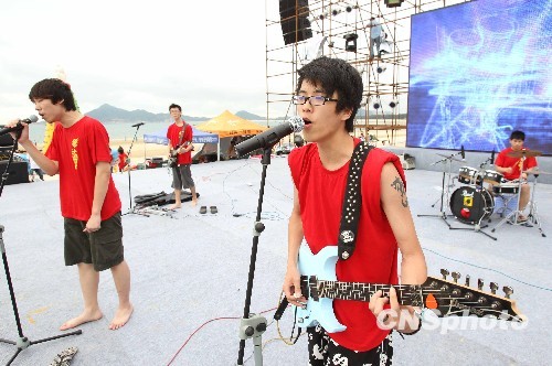 時值第二屆海峽論壇正在福建舉辦之際,臺灣青創總會青年企業家、臺灣財團法人十杰基金會青年、臺灣學生和福建各界青年代表2500人,21日歡聚美麗的東山島,舉行了“海峽兩岸青年狂歡——沙灘嘉年華”活動,豐富多彩的節目吸引了5000多名游客和當地群眾觀看。