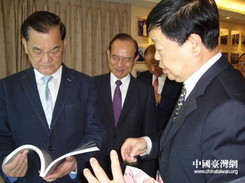 中國(guó)臺(tái)灣網(wǎng)6月24日西安消息 日前,中國(guó)國(guó)民黨榮譽(yù)主席連戰(zhàn)、親民黨主席宋楚瑜在臺(tái)北會(huì)見(jiàn)陜西省人大文化交流訪問(wèn)團(tuán)并分別為陜西美術(shù)家協(xié)會(huì)題詞。