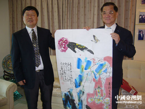 王西京給連戰(zhàn)贈(zèng)畫(huà)。圖片來(lái)源:陜西省臺(tái)辦