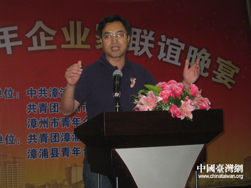 漳浦縣委常委、宣傳部長、教育工委書記周小華向訪問團介紹浦臺青年交流合作情況以及臺資企業在漳浦的發展壯大歷程。(漳浦縣臺辦 陳文亮 攝)
