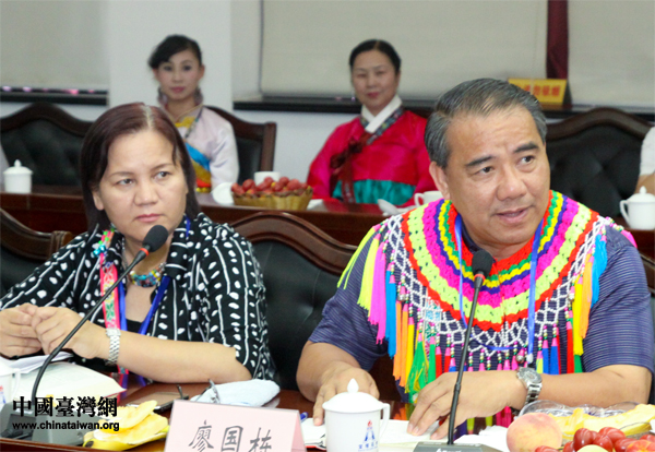 臺灣少數民族民意代表、中華兩岸少數民族知識經濟交流協會理事長廖國棟,在“寧夏、臺灣少數民族座談會”上發言。(中國臺灣網 陳佳慧 攝)