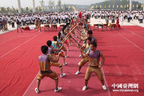 臺灣特色“宋江陣”獻演兩岸炎帝神農祭祀大典,圖為“八卦陣”(中國臺灣網 趙輝 攝)