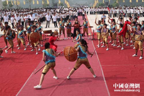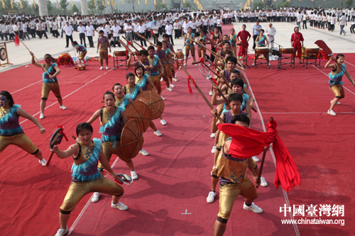 中國臺灣網8月9日隨州消息 今天上午,炎帝神農祭祀大典在神農故里隨州市舉行。大典上,臺灣大學生為在場嘉賓獻上了一場頗具臺灣特色的“宋江陣”表演,這也是臺灣“宋江陣”首次亮相大陸。
