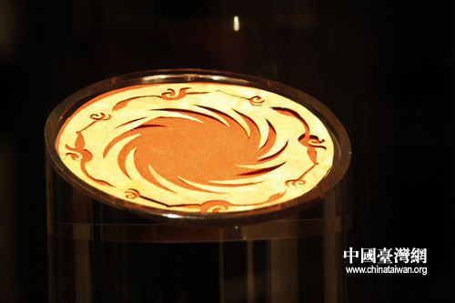 金沙遺址出土的“太陽神鳥”金飾,其精致美感令人嘆為觀止。(中國臺(tái)灣網(wǎng) 馬迪 攝)