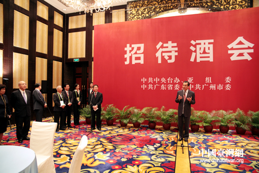 11月11日,中共中央臺辦與廣州亞運會組委會、廣東省委、廣州市委共同舉辦招待酒會,歡迎前來出席廣州亞運會開幕式的臺灣各界嘉賓。(中國臺灣網 鐘寶華 攝)