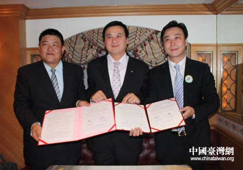 葫蘆島市青聯(lián)與臺(tái)灣國際青商會(huì)的有關(guān)分會(huì)簽署了《經(jīng)濟(jì)文化交流合作協(xié)議》(圖片來源:葫蘆島市臺(tái)辦)