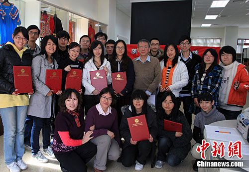臺灣海洋大學新成立的國際事務處近日專為“大陸交換生”舉辦新年座談及歡送會。22位“大陸交換生”分別來自中國海洋大學、上海海洋大學、浙江海洋大學,在臺灣海洋大學交換學習一學期或一學年,他們是在該校學習的第二批大陸交換生。國際事務處沈士新博士、處長,當天為13位如期完成了學習的交換生頒發學習證書。中新社記者 關向東 攝