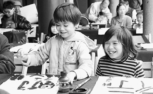 參加者多是兒童的還有“書福道”。除了教寫書法,“書福道”的老師每天也會教一句《論語》,何正一那天教的是“巧言令色”。寫著“行善”兩個字,何正一不忘順便教導小朋友:“長大了賺到錢,不要只放在自己口袋里,也要給那些需要幫助的人。”孩子們可能聽到,也可能沒聽到,仍在縱興揮毫,一雙雙小手寫得無拘無束。