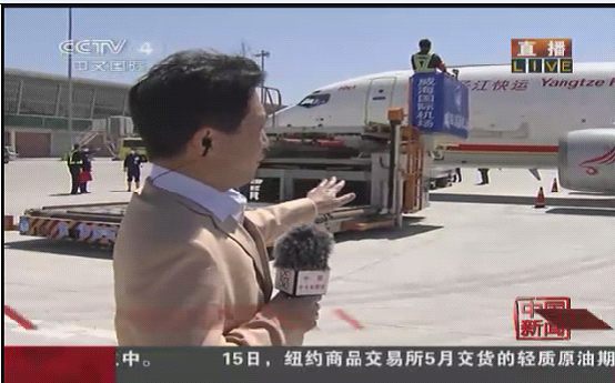 長鬃山羊“喜洋洋”、“樂洋洋”以及梅花鹿“繁星”和“點(diǎn)點(diǎn)”抵達(dá)機(jī)場后,被小心的運(yùn)下飛機(jī)。圖片來源:中央電視臺