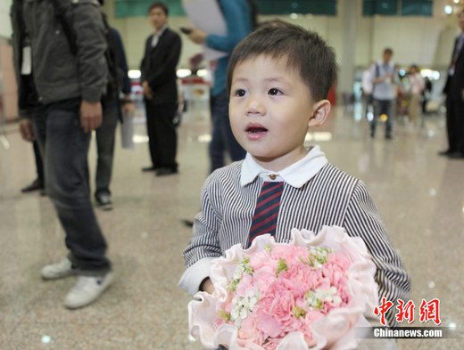 2011年5月2日,大陸著名歌唱家宋祖英抵達臺北,將于5月8日在臺北小巨蛋舉行“宋祖英2011臺北小巨蛋演唱會”,并與臺灣歌手周杰倫、周華健同臺演出。圖為在機場等待宋祖英到來的小“粉絲”。中新社發 路梅 攝