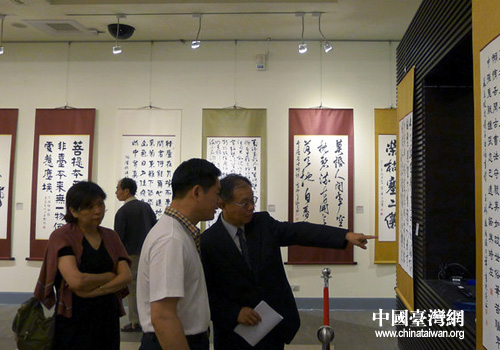 考察團(tuán)在臺(tái)參觀書畫展(圖片來(lái)源:沈陽(yáng)市臺(tái)辦)
