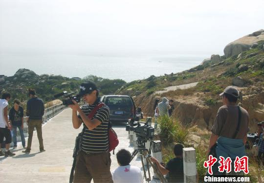 當日,記者在東山島最高峰——蘇峰山山腳下看到,劇組人員正忙著搬運設備,化裝布景。許多村中的老阿婆也應邀前來湊熱鬧。
