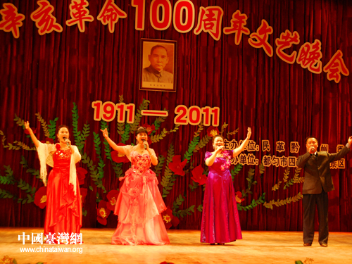 民革黔南州委主委、副主委與臺屬代表一起朗誦《辛亥百年》、《辛亥之歌之緬懷孫中山先生》。文藝晚會在大家高唱《我愛中華》聲聲中落下帷幕。(中國臺灣網貴州通訊員 羅世云)