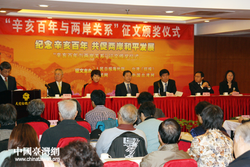 由人民日報海外版、臺灣《旺報》、人民網、中國臺灣網聯合舉辦的“辛亥百年與兩岸關系”征文活動,11月24日在北京舉行頒獎儀式。(中國臺灣網 楊麗 攝)