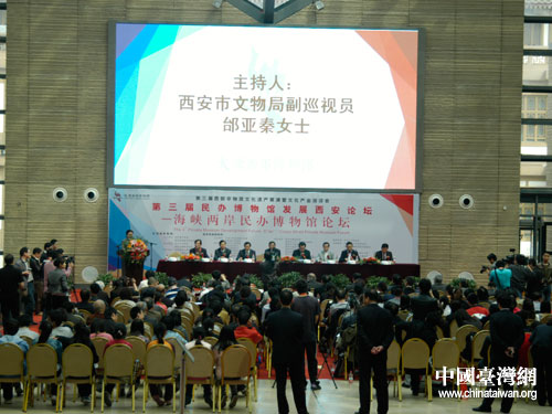 中國臺灣網4月7日西安消息 4月6日,第三屆民辦博物館發展西安論壇—海峽兩岸民辦博物館論壇在西安大唐西市博物館盛大開幕。陜西省政協副主席王曉安、陜西省海峽兩岸交流促進會副會長何銳、陜西省文物局副局長劉云輝及兩岸民辦博物館館長、文史及博物館學專家近百人出席活動。