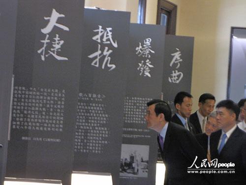 臺(tái)灣當(dāng)局領(lǐng)導(dǎo)人緬懷抗戰(zhàn)75周年特展。吳亞明攝。
