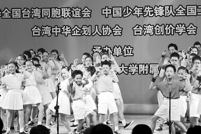 紀念活動中最精彩的部分莫過于穿著七色服飾的兩岸小天使們同臺合作表演。“兩岸和平,由我做起!”全場齊呼的口號就像兩岸和平小天使共同的約定。圖片來源:人民日報海外版