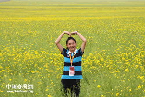 門源油菜花海,一位臺灣學生在開心地拍照(中國臺灣網 趙輝 攝)