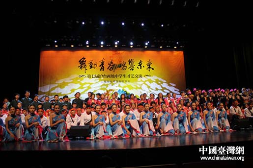 “舞動青春 唱響未來”——第七屆滬臺兩地中學生才藝交流在上海舉行,圖為兩岸中學生才藝表演后合影留念。(圖片來源:上海市臺聯)