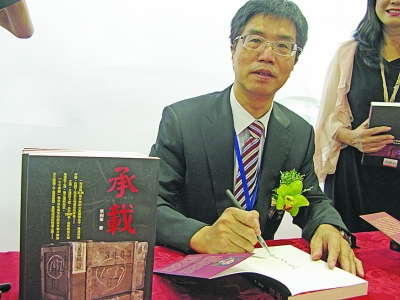 兩個貼有“北平故宮博物院”封條的木箱子,鮮紅的“承載”兩個大字,醒目的出現在《承載》一書的封面上。簽售前,多年從事文化工作的章劍華向臺灣讀者介紹他撰寫這部書的緣由,在他擔任文化廳長的時候,他經常去南京博物院考察,“一次,他們帶我去朝天宮文物庫房,眼前的景象令我震驚。2000多個木箱子整齊的碼放成排,每一個箱子上都貼著封條,工作人員告訴我,這都是抗戰時期南遷文物留下的。回來后,腦海中不斷涌現當年的情景,我開始著手研究這段歷史。”