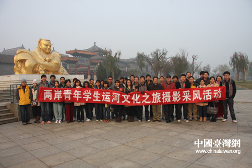 兩岸青年學(xué)生在運河畔的石家大院廣場合影。(中國臺灣網(wǎng)發(fā) 王亮攝)