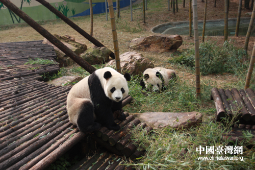 熊貓“奧運”、“壯妹”。(中國臺灣網 樊玉嬌 攝)