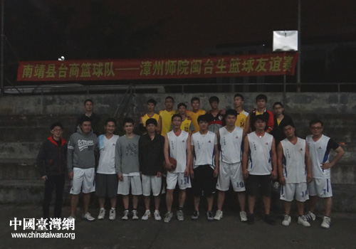 中國臺灣網12月11日漳州消息 日前,漳州市南靖縣臺商籃球隊與漳州師范學院閩臺生籃球友誼賽在漳州師院燈光籃球場舉行。雙方實力相當,比分一直處于膠著狀態。經過四節比賽,最終閩臺生籃球隊以51比48贏得了友誼賽的勝利。賽后,兩隊球員友好握手,并在球場上合影留念。