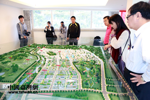 2013年9月6日,臺灣媒體高管參觀桂臺(賀州)客家文化旅游示范區規劃沙盤。(廣西臺辦供圖)