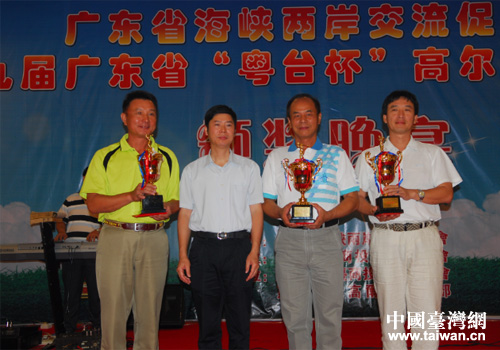 中國(guó)臺(tái)灣網(wǎng)10月31日惠州消息 日前,第九屆廣東省“粵臺(tái)杯”高爾夫球邀請(qǐng)賽在惠州湯泉高爾夫球會(huì)成功舉行。當(dāng)晚,在景億宴會(huì)廳舉行了隆重的頒獎(jiǎng)晚宴。廣東省臺(tái)辦副主任、促進(jìn)會(huì)常務(wù)副會(huì)長(zhǎng)陳林佐,促進(jìn)會(huì)常務(wù)副會(huì)長(zhǎng)陳連從、促進(jìn)會(huì)副會(huì)長(zhǎng)白瑞秋、梁茂忠、李建興,惠州市人民政府副市長(zhǎng)王勝,惠州市委副秘書長(zhǎng)、惠州市臺(tái)辦主任廖巍,惠州市人民政府副秘書長(zhǎng)周海英等出席活動(dòng)。來自全省各地130多位嘉賓及臺(tái)商參加此次盛會(huì)。