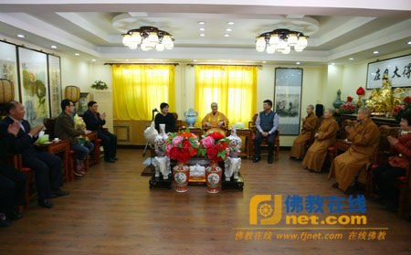 佛教在線天津訊 2013年11月11日,臺(tái)灣著名歌星鄭智化一行到天津薦福觀音寺參訪,受到薦福觀音寺住持妙賢法師及常住法師的熱情歡迎。