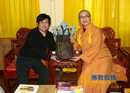 薦福觀音寺住持妙賢法師向歌星鄭智化贈(zèng)送禮品
