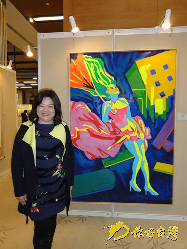 臺灣油畫家吳和珍與她的作品。(你好臺灣網 圖)
