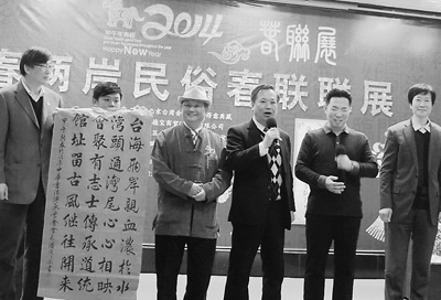 由北京市臺聯(lián)與得意典藏主辦的首屆“前門新春兩岸民俗春聯(lián)聯(lián)展”,近日在北京前門的臺灣會館啟動(見圖)。兩岸書法家一起創(chuàng)作書寫春聯(lián),并在各家字號的門前展出臺灣老照片以及大陸藝術(shù)家赴臺采風(fēng)剪紙,把前門商圈變成一座“活動的兩岸博物館”。系列活動一直持續(xù)到正月十五元宵節(jié),市民可前往體驗欣賞。