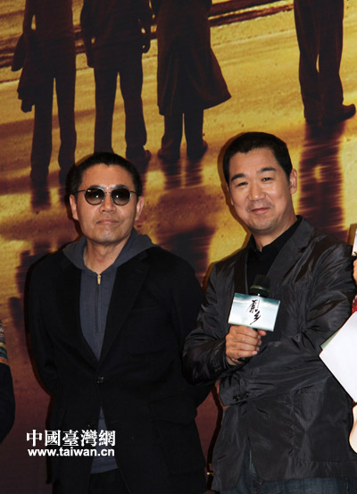 由張國(guó)立、陳寶國(guó)等兩岸明星出演的年度情感大戲《原鄉(xiāng)》6日在京舉行開播發(fā)布會(huì),圖為主演張國(guó)立與陳寶國(guó)(中國(guó)臺(tái)灣網(wǎng) 李徽 攝)