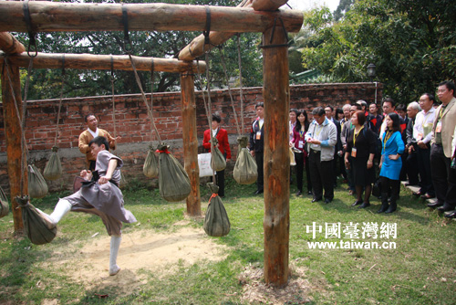 兩岸校長(zhǎng)參觀廣東省華僑職業(yè)技術(shù)學(xué)校禪武中心,體驗(yàn)中華武術(shù)文化。(中國(guó)臺(tái)灣網(wǎng)發(fā) 王羽威攝)