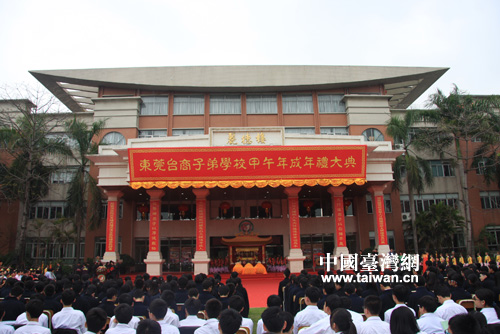 中國(guó)臺(tái)灣網(wǎng)3月29日東莞消息 3月26日至28日,第三屆海峽兩岸(粵臺(tái))中等教育論壇暨東莞臺(tái)商子弟學(xué)校甲午年成年禮大典于在東莞臺(tái)商子弟學(xué)校隆重舉行。本屆論壇以中華文化傳承與創(chuàng)新教育為主軸,探討中華文化與感恩教育、創(chuàng)新中華文化教育課程兩大主題。同時(shí),東莞臺(tái)商子弟學(xué)校為高二學(xué)生舉辦了甲午年成年禮大典,成為兩岸中等教育學(xué)校傳承中華文化教育的示范活動(dòng)。