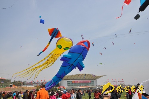 頗受歡迎的山東濰坊風箏放飛表演。(你好臺灣網 圖)