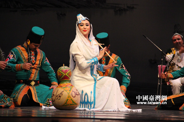 中國(guó)臺(tái)灣網(wǎng)4月11日臺(tái)南消息 從和田到烏魯木齊到北京再到臺(tái)灣,歷經(jīng)近一萬公里的路途,13位新疆表演藝術(shù)家來到寶島臺(tái)灣,為當(dāng)?shù)赜^眾呈現(xiàn)了獨(dú)特的少數(shù)民族特色,更帶去了精致的新疆風(fēng)味。作為中華民族特有的少數(shù)民族文化特色之一,新疆歌舞表演在臺(tái)灣受到了熱烈的歡迎。