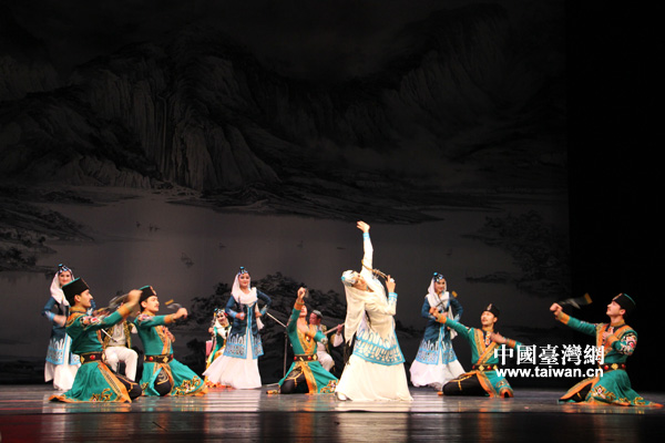 4月10日,新疆和田新玉歌舞團(tuán)在嘉義表演藝術(shù)中心表演歌舞玉田女。(中國(guó)臺(tái)灣網(wǎng) 高斯斯 攝)