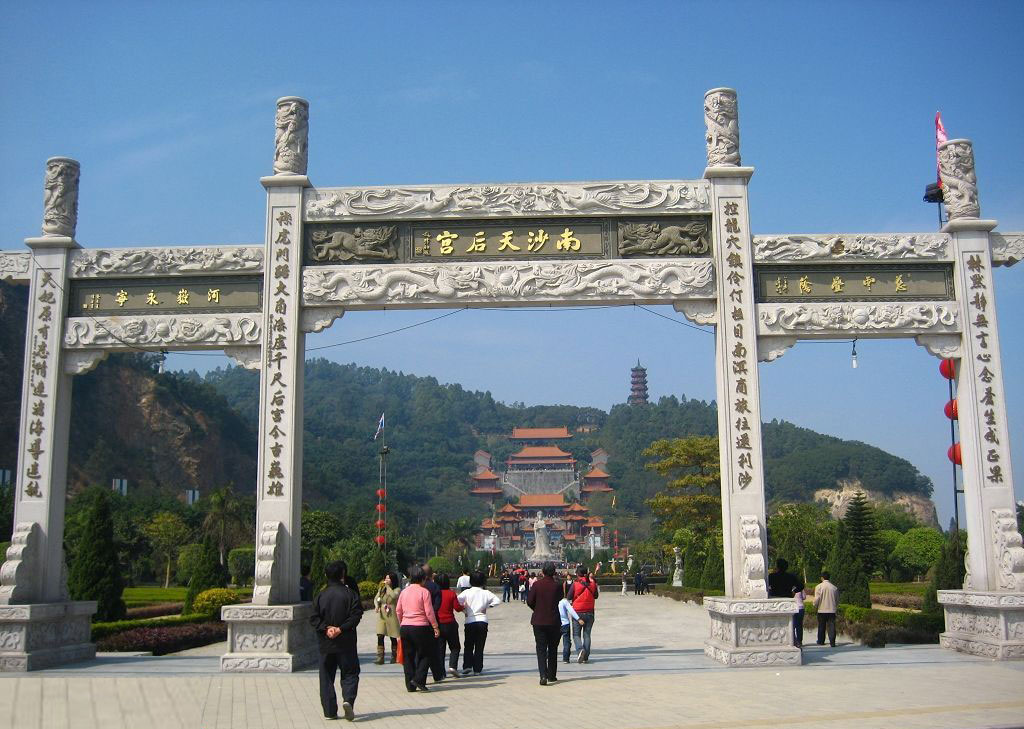 南沙天后宮,緊臨珠江出海口伶仃洋,坐落于大角山東南麓,依山傍水,其建筑依山勢層疊而上,殿宇輝煌,樓閣雄偉,在天后廣場正中就是石雕天后圣像,是為紀念海上女神林默而建,建筑特點是集北京故宮的風(fēng)格和南京中山陵的氣勢于一體,其規(guī)模是現(xiàn)今世界同類建筑之最,被譽為“天下天后第一宮”,也是東南亞最大的媽祖廟。天后圣像高達14.5 米,屹立在天后宮廣場正中。整座天后宮四周綠樹婆娑,殿中香煙裊裊,置身其間令人頓生超凡脫俗的感覺。