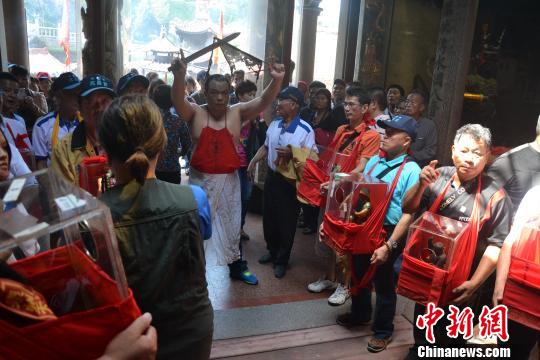 今年4月,湄洲媽祖祖廟董事會(huì)副董事長林金贊率領(lǐng)湄洲島當(dāng)?shù)?5個(gè)宮廟代表赴臺(tái)參加?jì)屪嫖幕涣鳌=涣髌陂g,林金贊與臺(tái)中明岡貿(mào)易有限公司董事長陳明塗結(jié)緣。