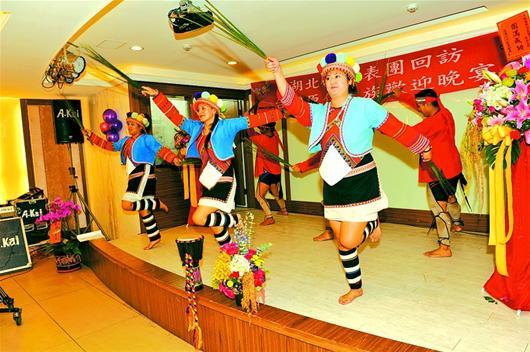 上圖:臺灣少數民族同胞載歌載舞,歡迎遠道而來的湖北朋友。