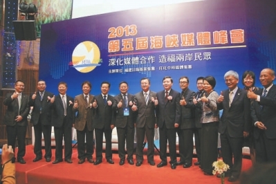 2009年8月,首屆海峽媒體峰會在福州舉行。該屆峰會是由福建日報社(報業(yè)集團(tuán))和臺灣旺旺中時媒體集團(tuán)、民眾日報社、澎湖日報社聯(lián)合主辦,邀請兩岸近50家媒體的嘉賓聚首福州,共同探討海峽兩岸媒體合作的空間與前景,搭建兩岸長期合作與交流的平臺。這是海峽兩岸媒體首次在福建共同舉辦的最大規(guī)模、最高層次的新聞研討會,對促進(jìn)兩岸關(guān)系的發(fā)展,拓展、提升閩臺交流與合作的領(lǐng)域與層次具有重要的歷史意義。