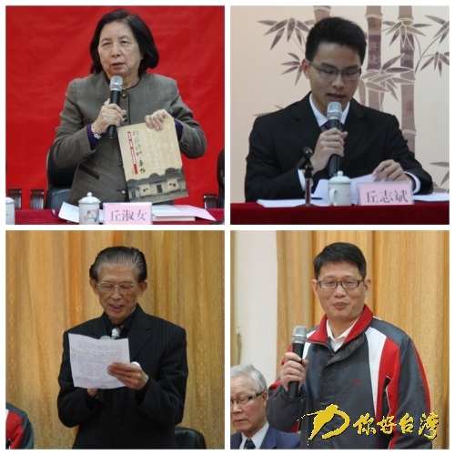 “作為后人,我們銘記逢甲公的遺愿,努力學習,牢記當代中國青年的歷史使命,投身社會實踐,為國家民族的富強和力促兩岸和平統一作出自己的努力。”廣東省丘逢甲研究會聯絡辦公室主任、丘逢甲嫡曾孫丘志斌介紹了研究會近年來開展的學術研究、紀念活動等情況。臺灣抗日志士親屬協進會會長、丘逢甲侄孫女丘淑女則介紹了丘逢甲、丘先甲兄弟抗日護臺的英雄事跡,并分享、贈送了其近期在臺灣出版的相關書籍和畫冊。